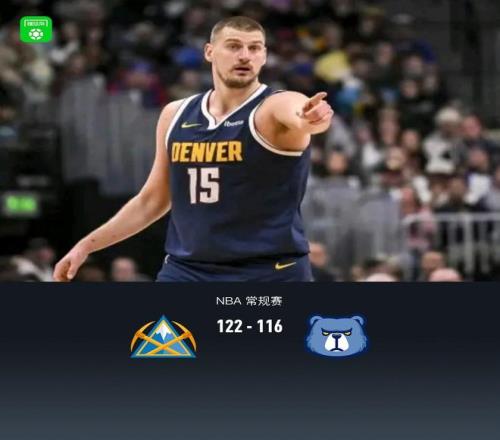 第四节掘金约基奇拿下7分,灰熊杰洛姆拿下5分,最终掘金122-116战胜灰熊